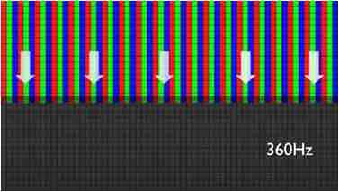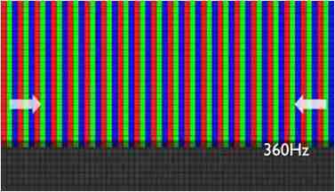 传统液晶驱动是从左到右单向进行,,,,在画面更新速度愈来越愈快的情况下,,位于驱动线路末端的右下角区域,,,,画素的闸极来不及在短时间内获得足够电压,,无法显示出正确的颜色资讯。。。。